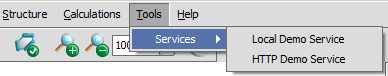 Note: When no Services are set in MarvinSketch, the Tools > Services menu will be disabled.