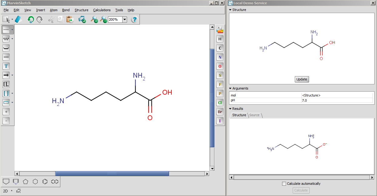 Figure 2. MarvinSketch window (left) with the new service window (right)