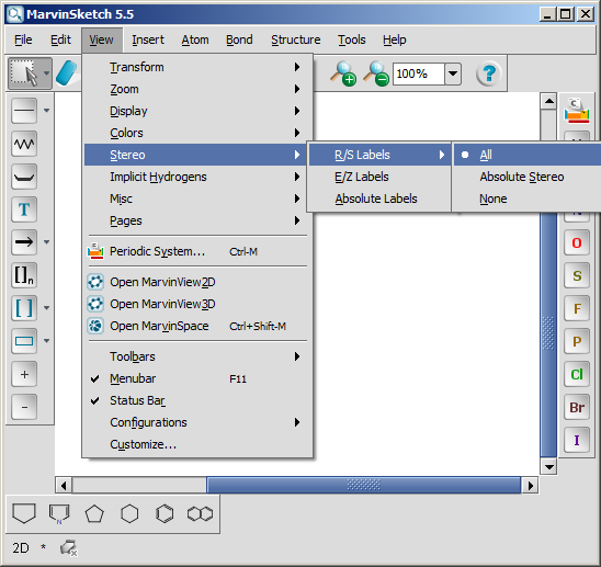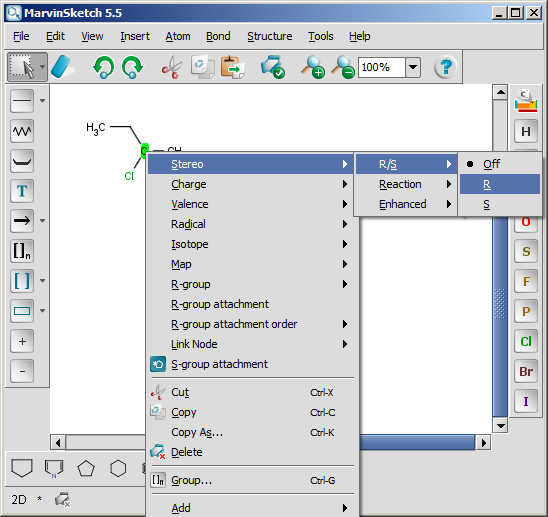 Works in MDL molecule formats: mol, rgf, sdf, rxn etc... and in ChemAxon Extended SMILES format: cxsmiles.